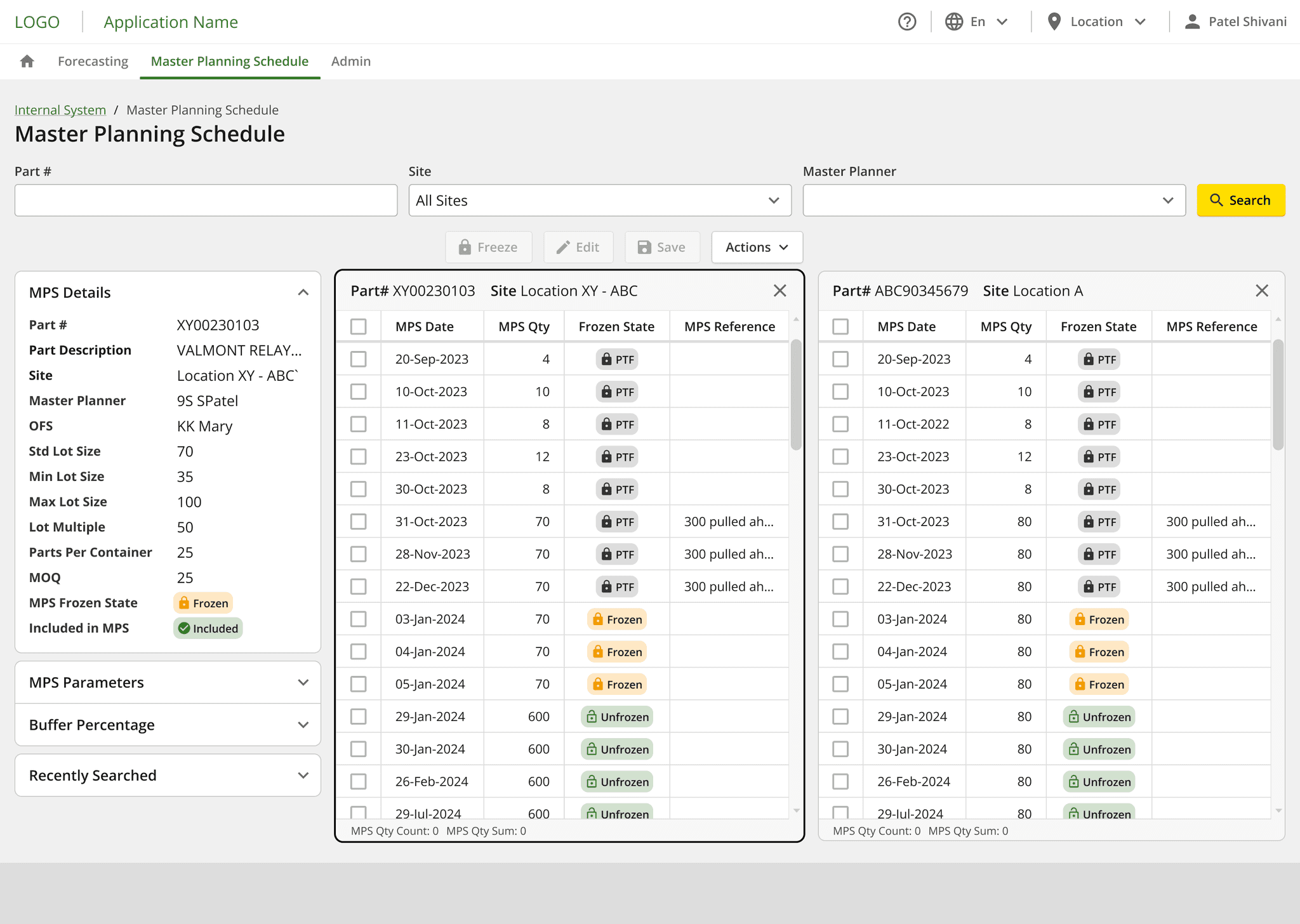 Planners often exported data to Excel just to compare parts, sites, or planning periods. A comparison view was introduced that allowed side-by-side analysis directly within the platform, preserving context while supporting faster decision-making.